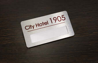 Металлические бейджи с окном предполагают удобную замену информации в прорезанном в металлической основе окошко. Основа представляет собой табличку с логотипом и иными неменяющимися данными, имена же сотрудников наносятся на бумажные или пластиковые сменные пластины. Такие бейджи в производстве еще дешевле, чем именные или корпоративные. Они универсальны, подойдут и для административных работников, и для медперсонала, и для сотрудников отделов обслуживания.