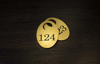 - металл: помимо износоустойчивости такие номерки имеют солидный внешний вид. Можно нанести позолоту, сделать обработку и т.д., тем самым усилив эстетические функции;